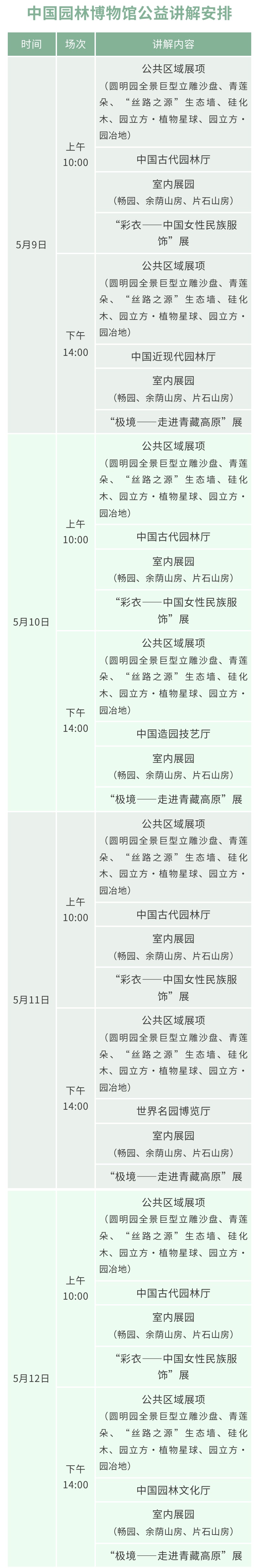 中国园林博物馆 展厅公益讲解安排(5月9日-5月12日)